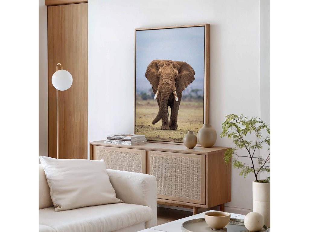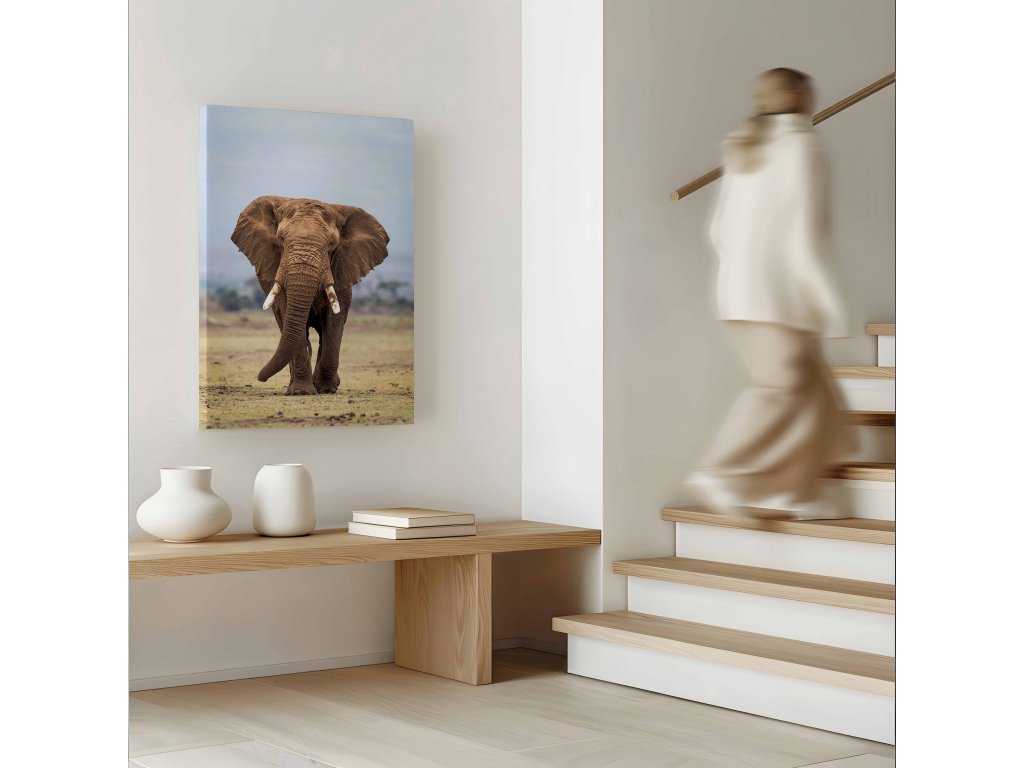 Obdivujte sílu a důstojnost největšího suchozemského tvora na tomto působivém portrétu afrického slona. Obraz na plátně detailně zachycuje jeho charakteristické rysy – od strukturované kůže přes mohutné kly až po moudrý pohled. Toto umělecké ztvárnění zdůrazňuje majestátnost ohroženého druhu a přináší silný vizuální zážitek. Kvalitní tisk na odolné plátno garantuje věrné podání barev a dlouhou životnost díla.