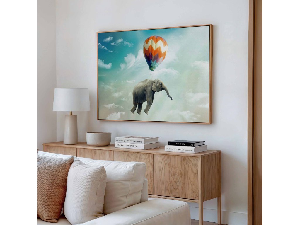 Hravý a fantazijní obraz slona letícího v horkovzdušném balónu je oslavou představivosti. Tato kouzelná scéna spojuje majestátnost slona s lehkostí letu. Jasné barvy a veselá kompozice vnesou do každého prostoru radost a originalitu. Kvalitní tisk na odolné plátno zajišťuje, že barvy zůstanou živé a detaily ostré. Perfektní dekorace do dětských pokojů nebo jakéhokoli kreativního prostoru.