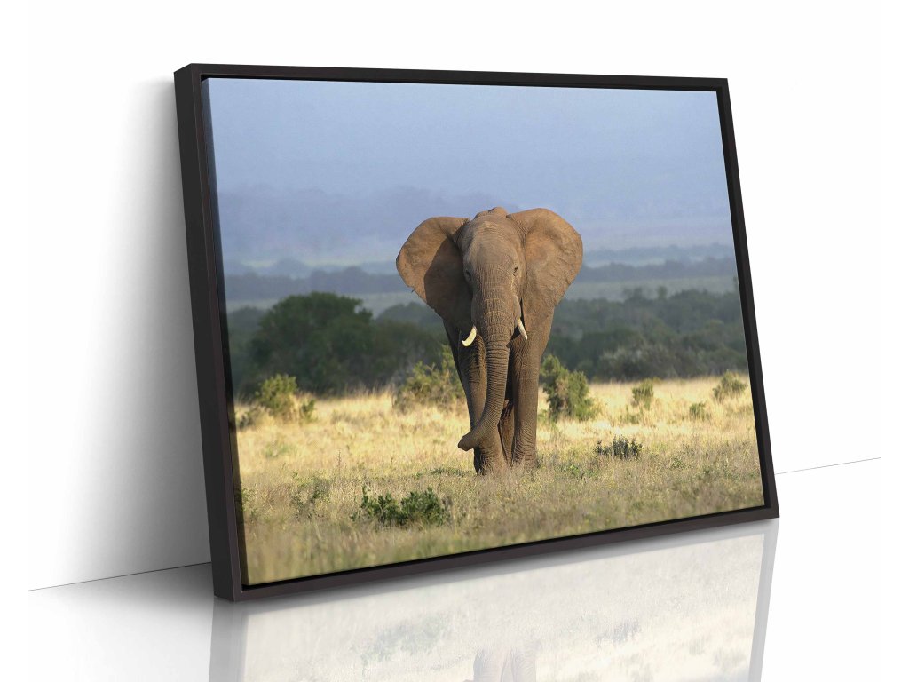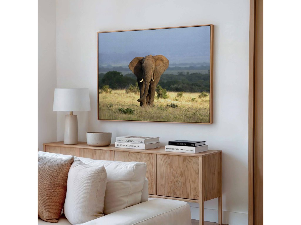 Poutavý obraz zachycující majestátního slona uprostřed louky pokryté vysokou zlatavou trávou. Kontrast šedé barvy slona se zářivými žlutými tóny vytváří výrazný a neobvyklý vizuální dojem. Suché traviny vlnící se ve větru dodávají scéně dynamiku a pocit volnosti. Tisk na odolné plátno zajišťuje intenzitu žluté barvy a ostrost. Ideální dekorace pro milovníky výrazných barev a netradičních kompozic.