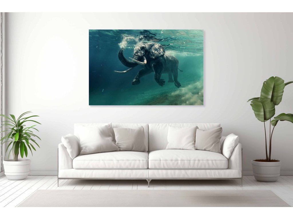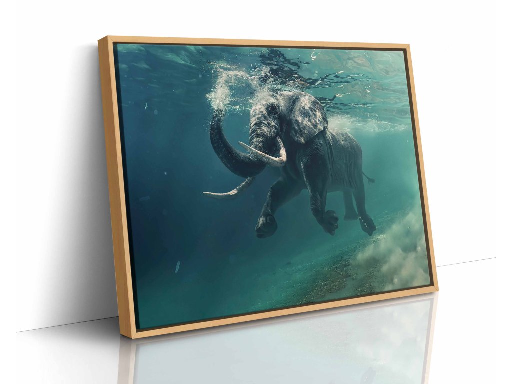 Fascinující pohled na slona, který si užívá osvěžující koupel. Tento obraz zachycuje méně známou, ale o to zajímavější stránku života těchto obrů – jejich lásku k vodě. Kontrast mezi mohutným tělem a klidnou hladinou vytváří harmonickou, a přesto dynamickou kompozici. Jemné odstíny modré a šedé vnesou do vašeho interiéru klid a svěžest. Tisk na odolné plátno zajišťuje dlouhou životnost a věrné barvy.