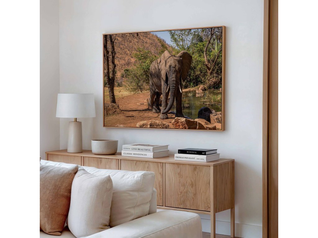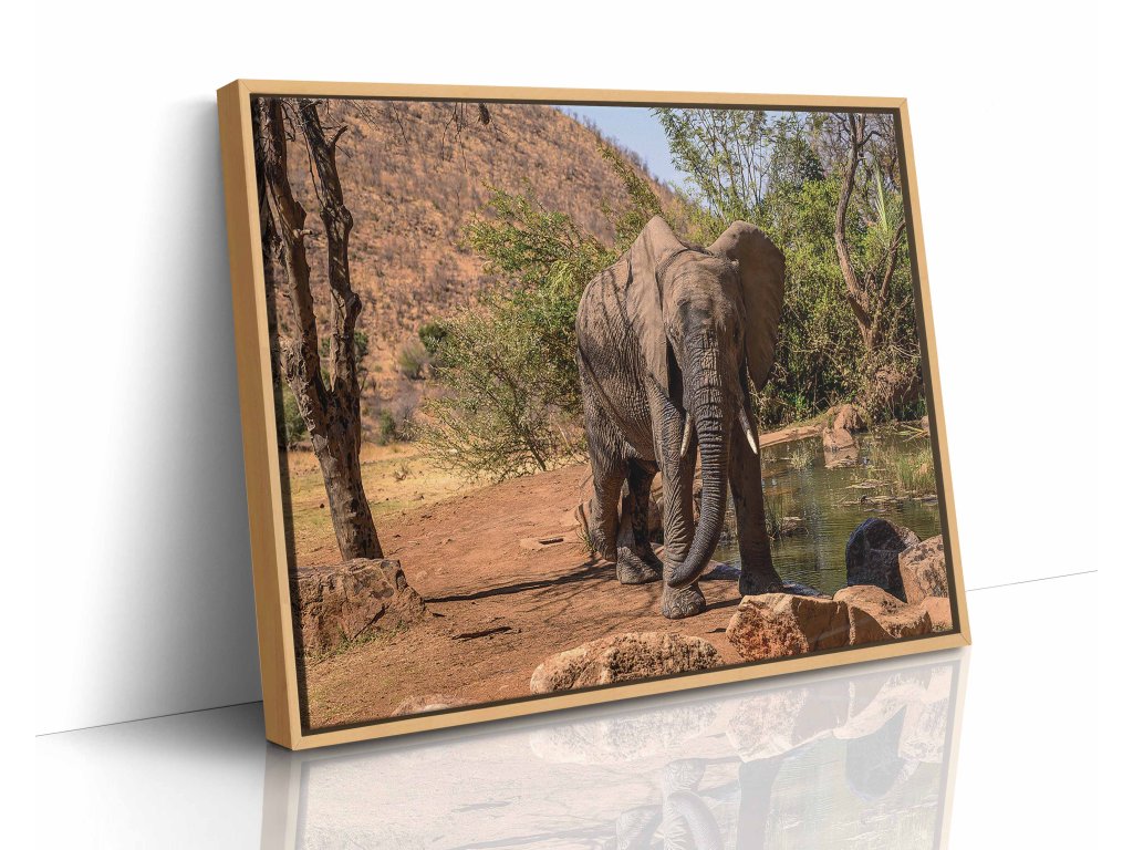 Netradiční kompozice slona v harmonickém zátiší s přírodními prvky. Obraz kombinuje realistickou podobu zvířete s uměleckým aranžmá okolí, což vytváří poetickou a lehce surrealistickou atmosféru. Pečlivě vybrané přírodní elementy jako květiny či větve doplňují majestátní figuru a vytváří vyvážený celek. Jemné barvy a měkké světlo dodávají obrazu uklidňující ráz. Tisk na odolné plátno zaručuje věrné podání detailů.