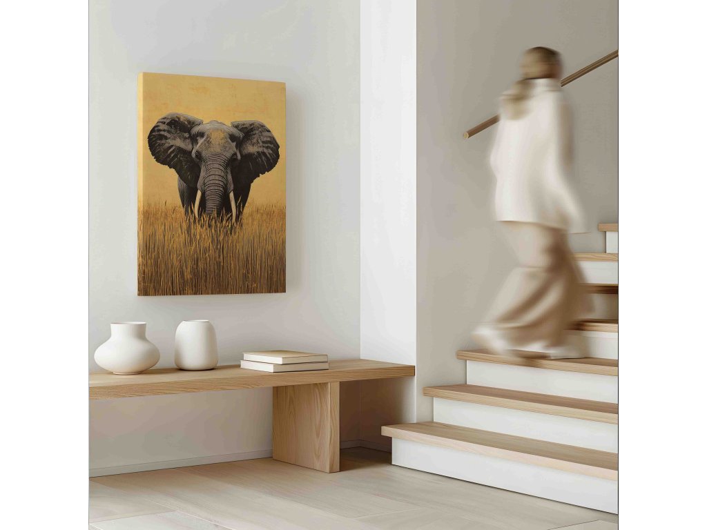 Teplo afrického slunce u vás doma. Tento obraz na plátně zachycuje majestátního slona jako siluetu na pozadí zářivě žluté savany. Výrazná barva dodá místnosti energii, teplo a pocit nekonečného prostoru. Je to ideální kousek pro ty, kteří milují africkou přírodu a safari styl. Kvalitní tisk na plátno zajišťuje, že žlutá bude skutečně sytá a sloní silueta bude ostře řezaná, což vytvoří na stěně dramatický a krásný efekt.