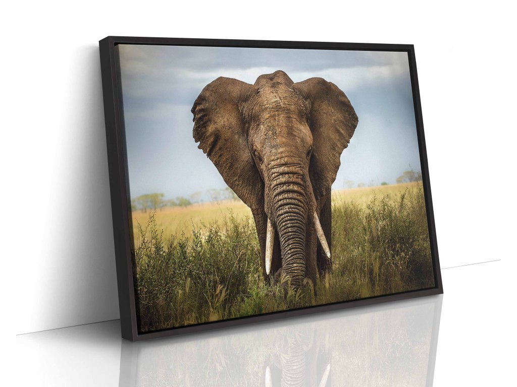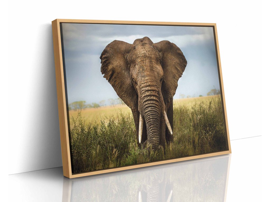 Dramatický pohled na majestátního slona, který se vynořuje z vysoké stepní trávy. Jeho mohutná silueta postupně vystupuje z moře zlatavých travin, což vytváří fascinující kontrast a neobvyklou perspektivu. Tento moment překvapení dodává obrazu napětí. Teplé barvy stepi a šedé tóny slona tvoří harmonickou paletu. Tisk na odolné plátno zajišťuje ostrost detailů. Unikátní dekorace pro milovníky neotřelých pohledů na divočinu.