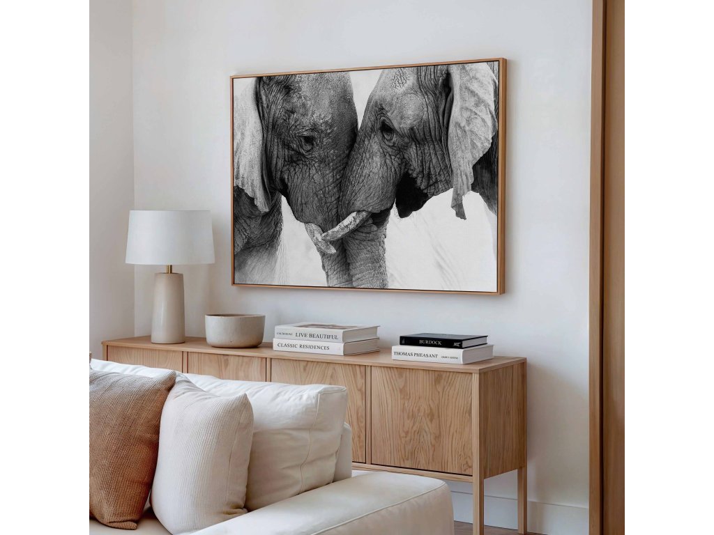 Romantický a něžný obraz páru slonů během intimního okamžiku. Dotyky chobotů a blízkost těl vyjadřují hluboké pouto a náklonnost. Obraz ukazuje emocionální hloubku a komplexnost vztahů v živočišné říši. Měkké světlo a harmonické barvy podtrhují romantickou atmosféru. Tisk na odolné plátno zajišťuje jemné barevné přechody a věrné detaily. Dokonalá dekorace pro romantické duše.