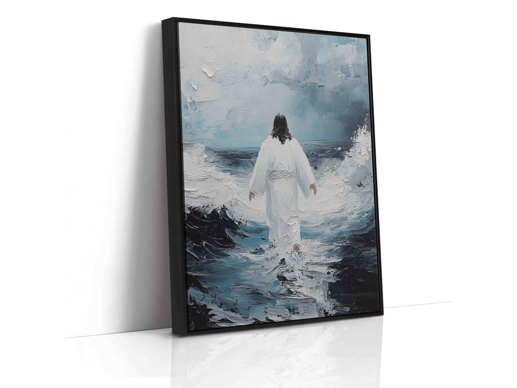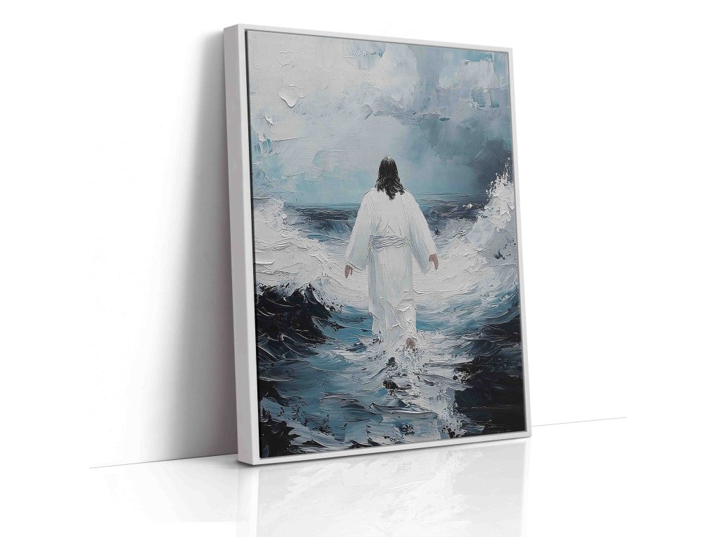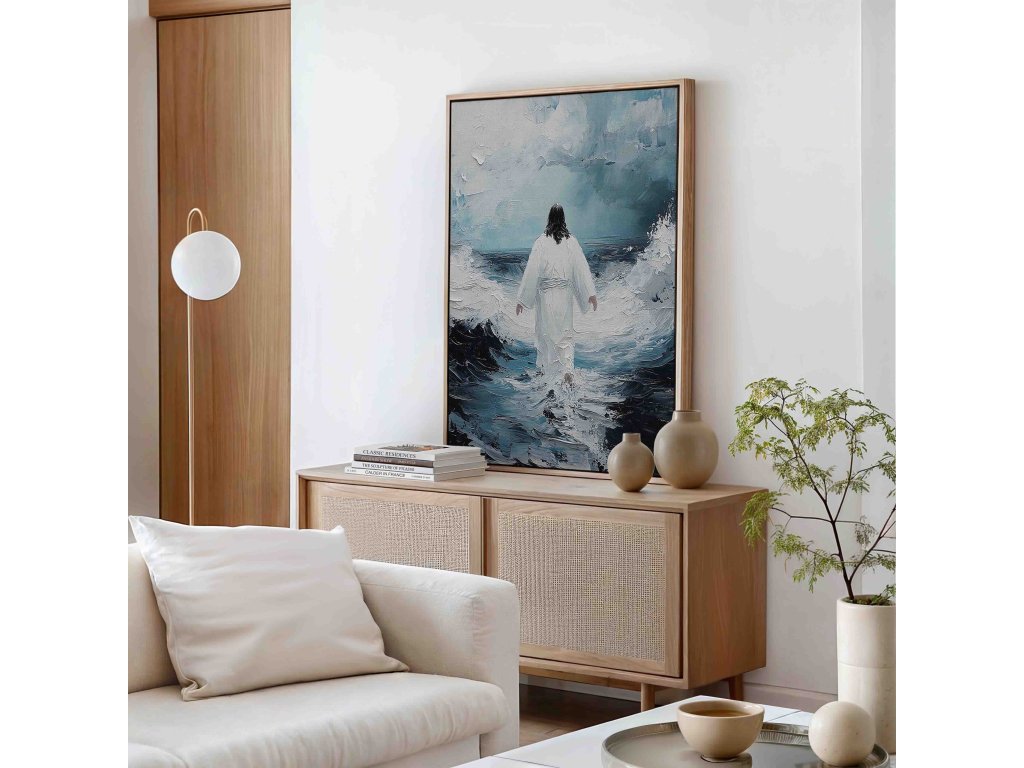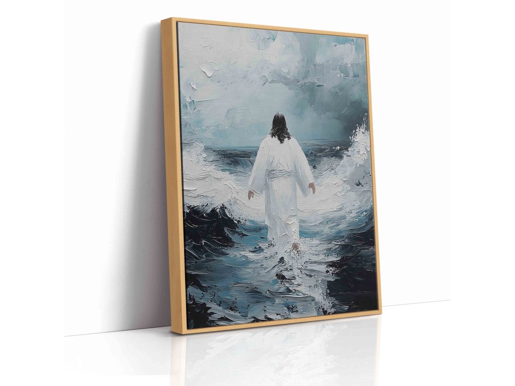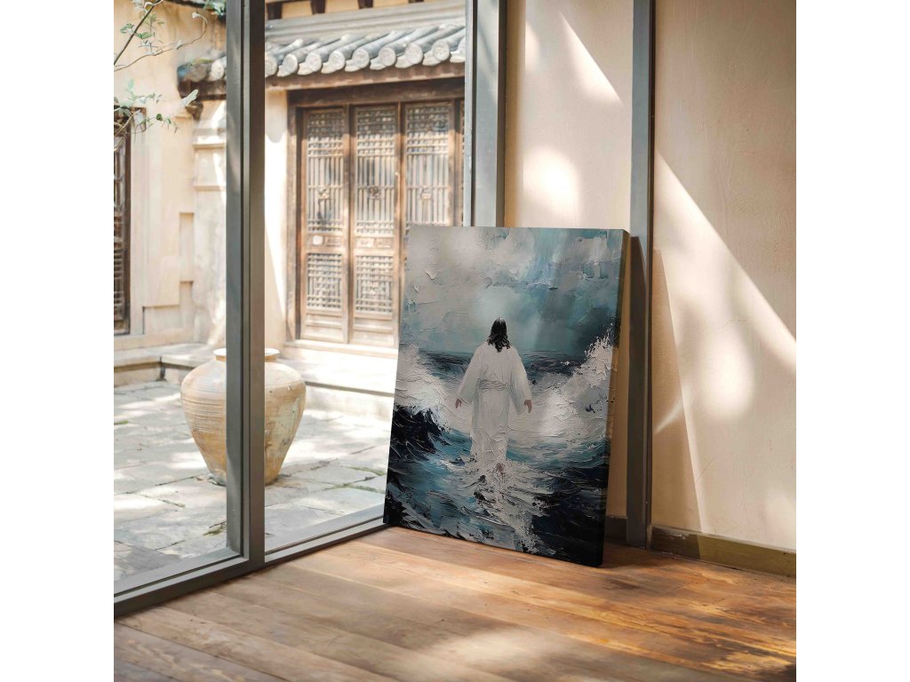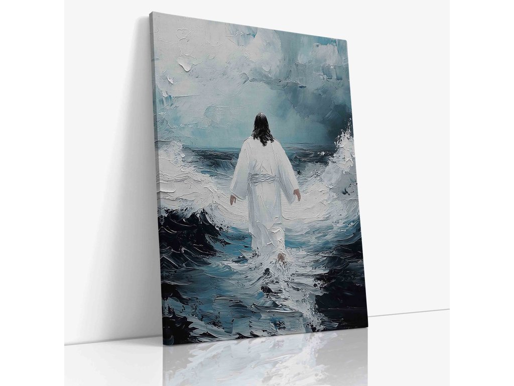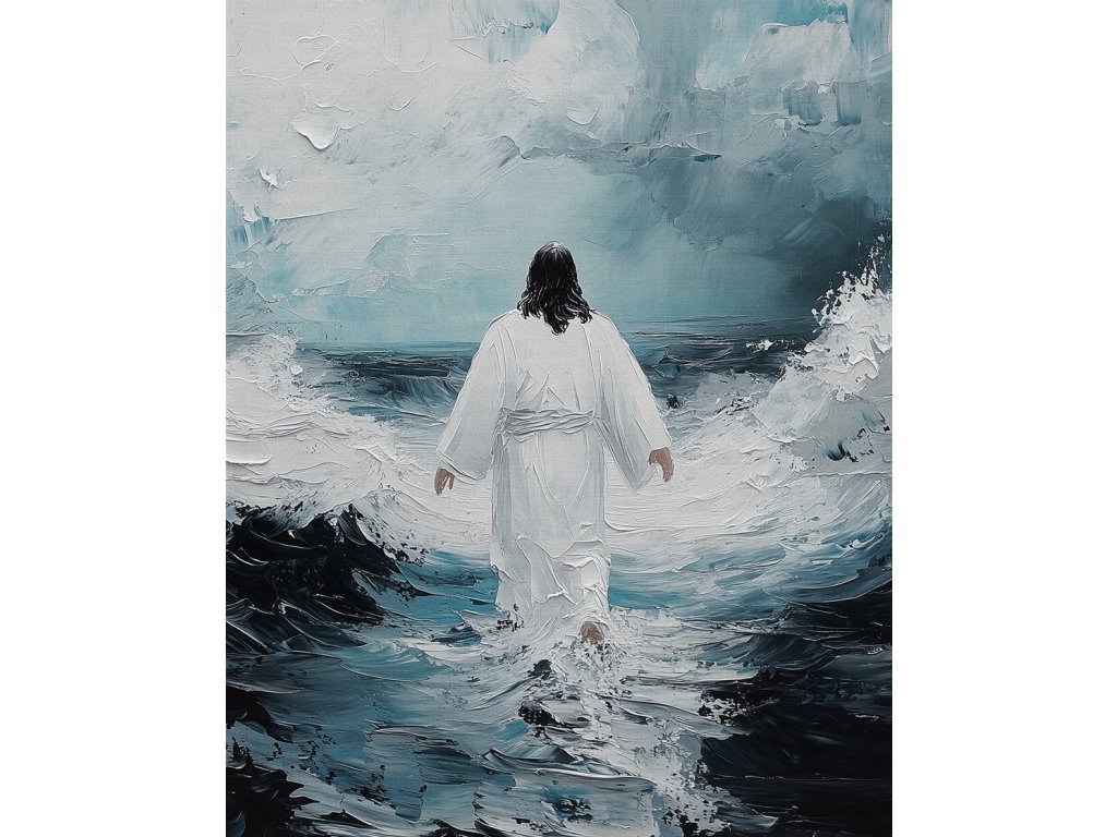 Poetický obraz "Spasitel odchází" zachycuje hluboce emotivní moment Kristova loučení. Toto umělecké dílo na plátně vyniká symbolickou kompozicí, kde Ježíšova postava směřuje ke světlu. Měkké barevné přechody a jemné světelné efekty evokují duchovní rozměr. Dílo vyzařuje pocit naděje a příslibu návratu. Obraz inspiruje k reflexi o vlastní duchovní cestě. Ideální pro kontemplativní prostory.