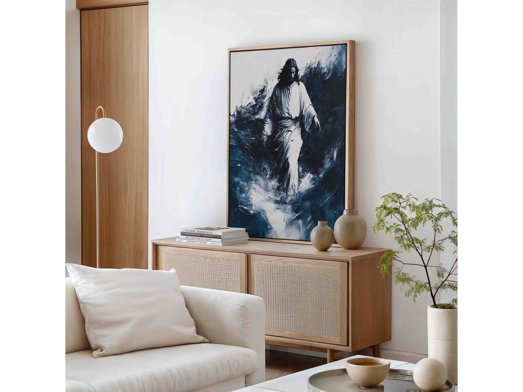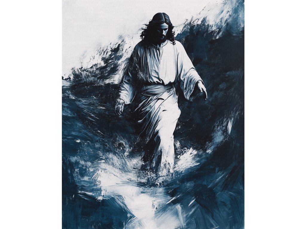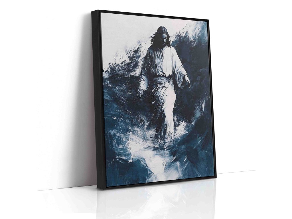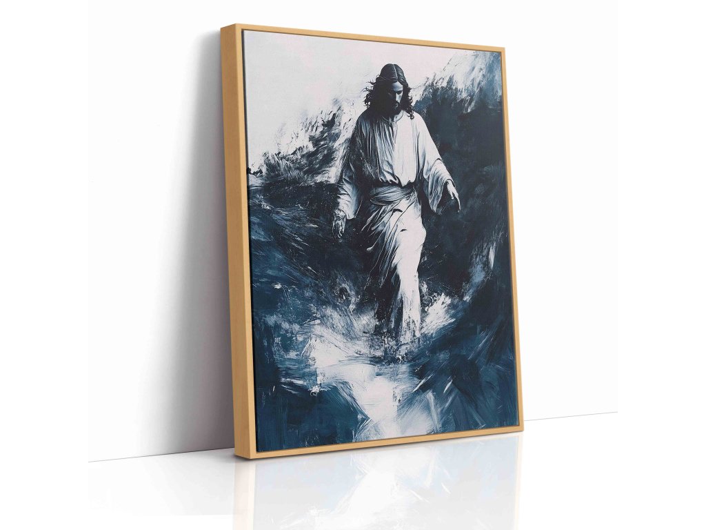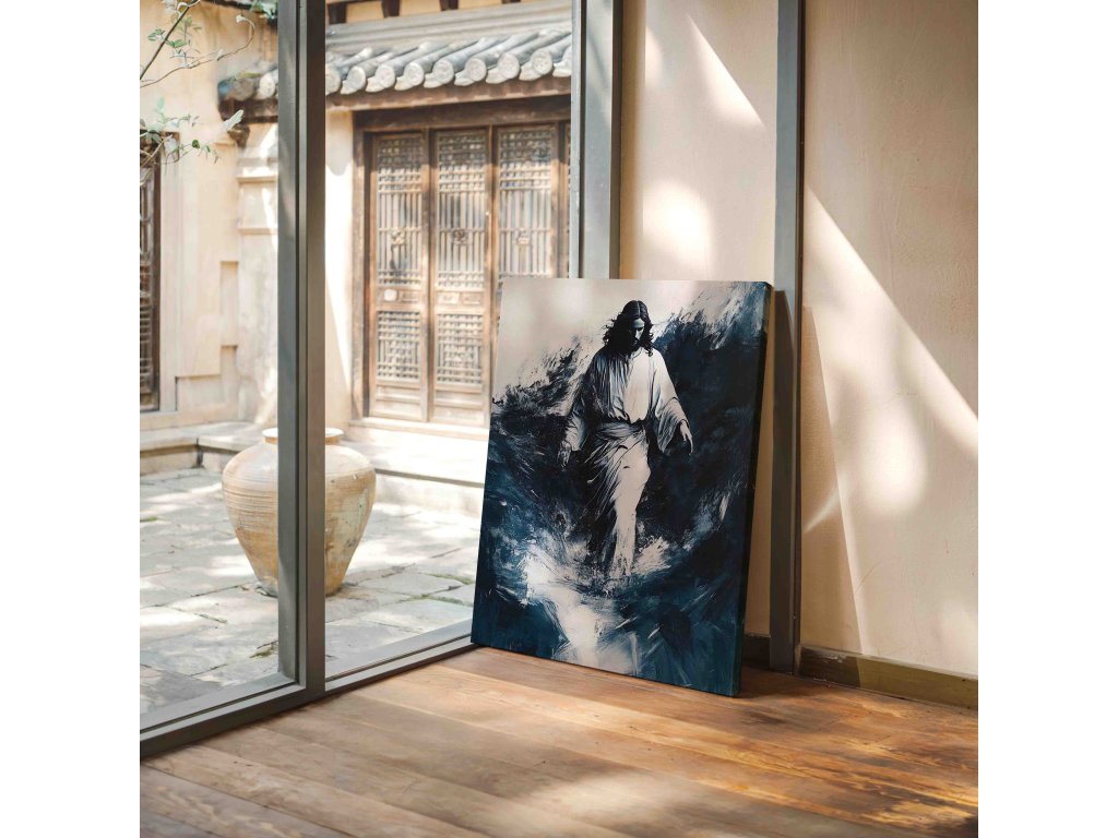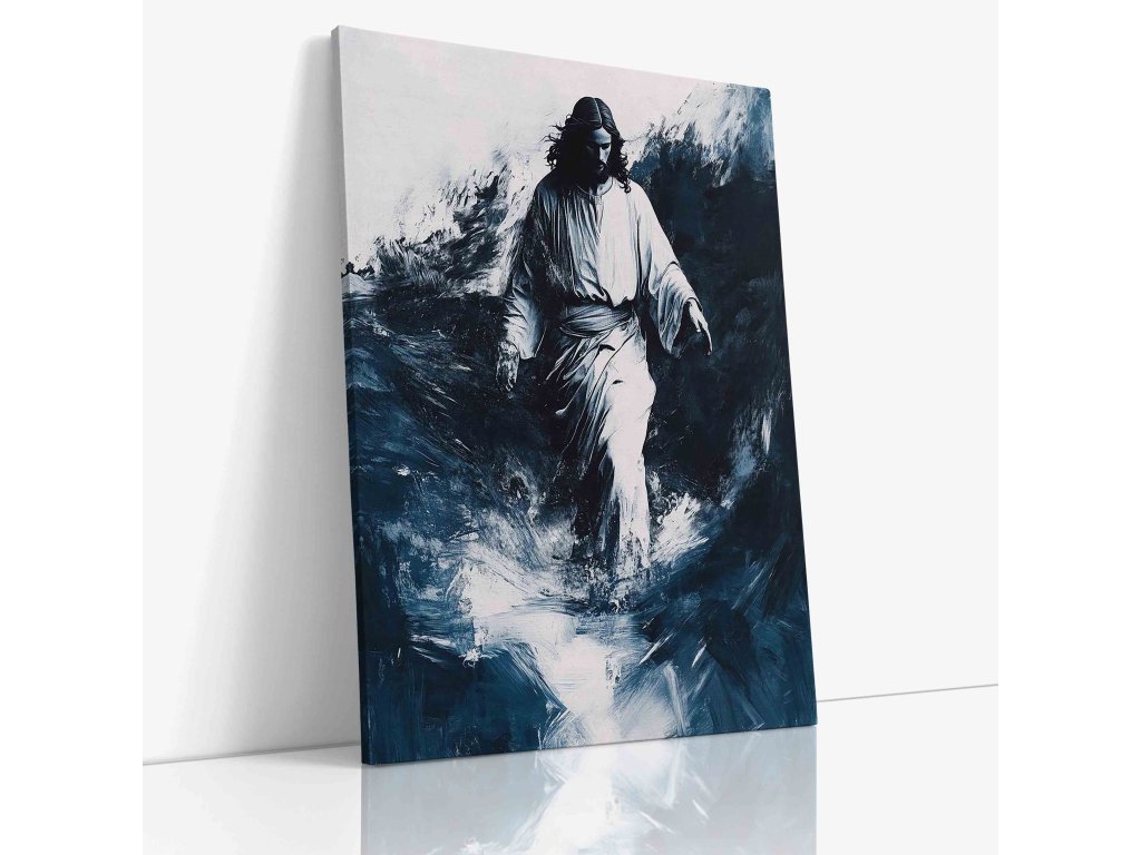 Dramatický obraz "Spasitel v divoké vodě" zachycuje Krista uprostřed rozbouřených vln – mocný symbol jeho schopnosti přinést klid do bouří našich životů. Toto umělecké dílo na plátně vyniká dynamickou kompozicí a kontrastem mezi neklidným živlem a klidnou postavou Spasitele. Impozantní zpracování vody a dramatické nebe vytvářejí hmatatelné napětí. Kristova postava však zůstává majestátní a vyrovnaná.