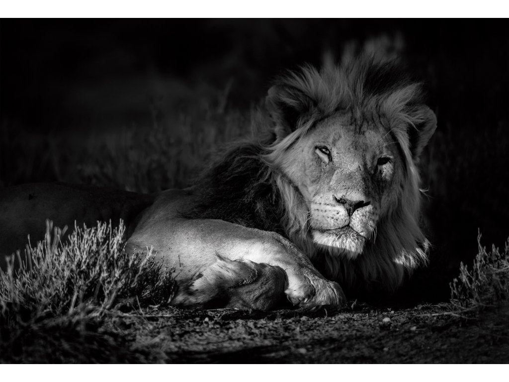 Tichá elegance. Černobílé provedení spícího lva dodává motivu na uměleckosti a jemnosti. Vhodné do ložnic pro navození klidné atmosféry pro spánek. Absence barev dává vyniknout klidnému výrazu zvířete a textuře jeho hřívy. Stylový a nerušivý doplněk.