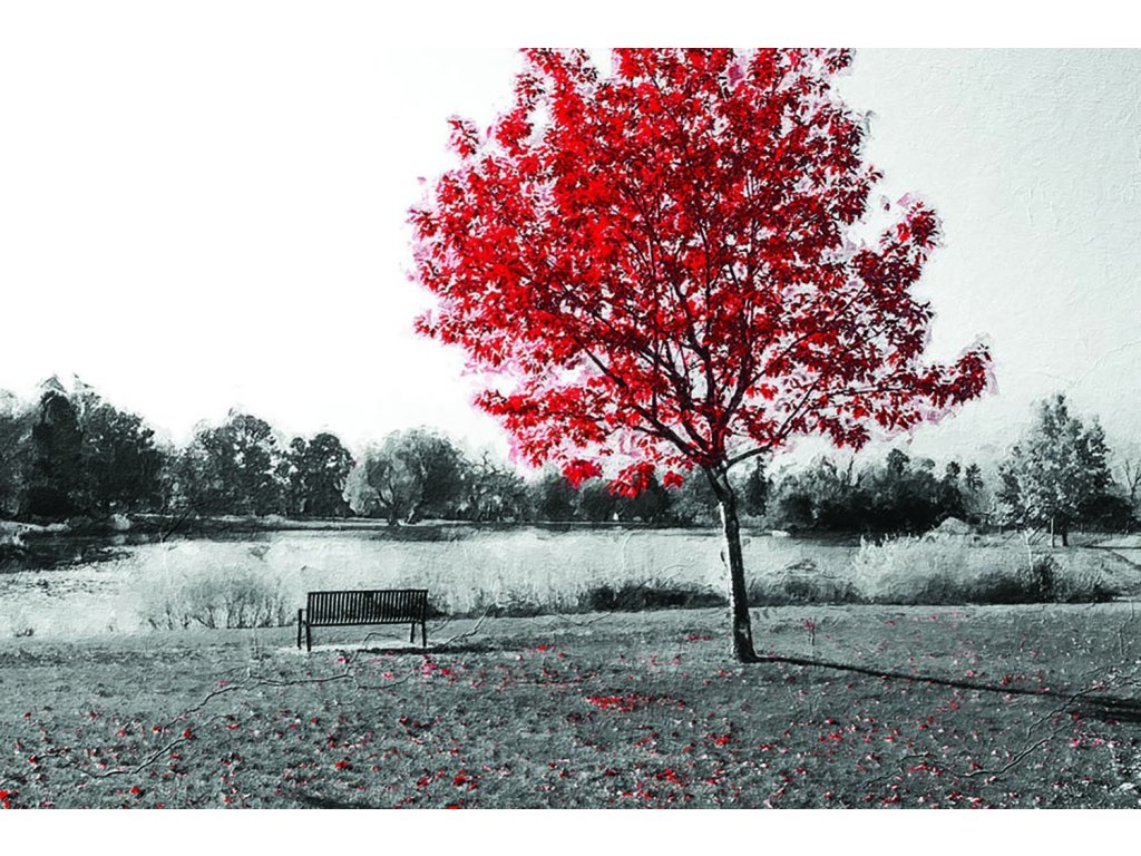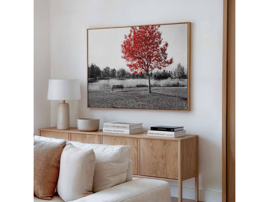 Dodejte svému interiéru vášeň a energii s obrazem stromu sytě červeného listí. Tento výrazný přírodní motiv funguje jako skvělý barevný akcent v neutrálně zařízených místnostech. Červená barva listí v kontrastu s tmavým kmenem působí dramaticky a umělecky. Kvalitní plátno zaručuje, že intenzita barev zůstane zachována. Ideální pro odvážné interiéry.