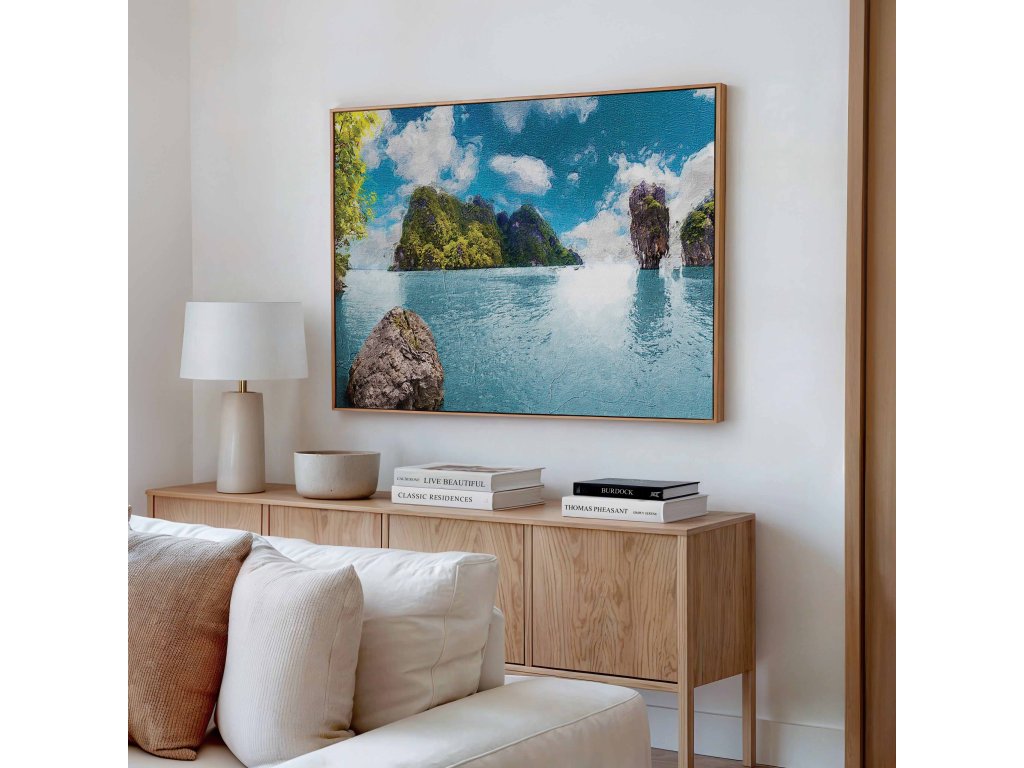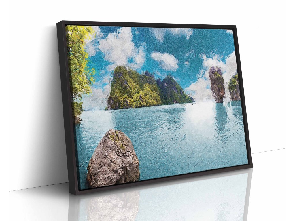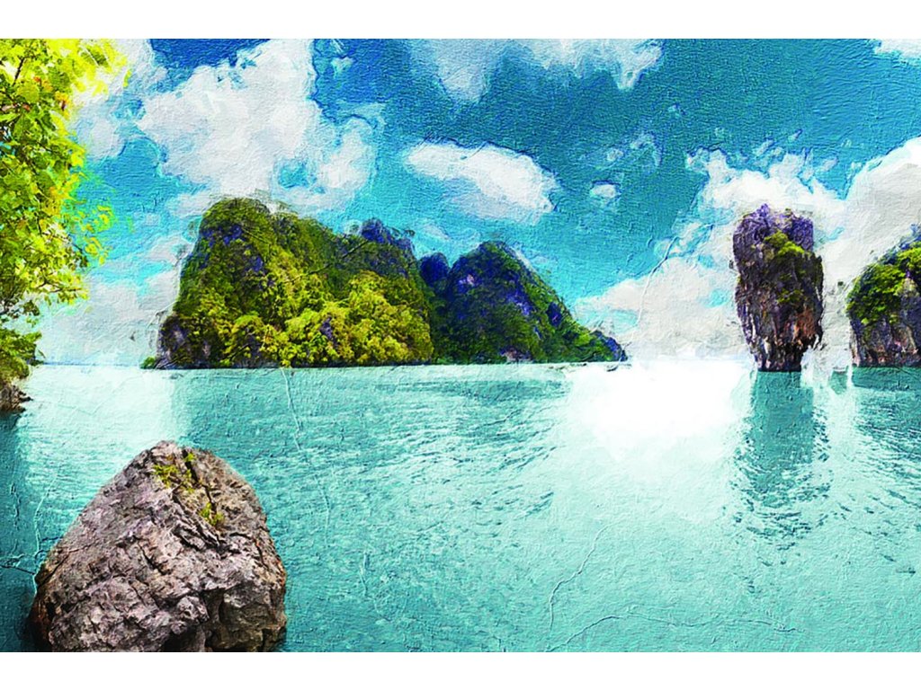 Exotika na dosah ruky. Obraz Thajská příroda zachycuje typické vápencové skály vystupující z tyrkysového moře, bujnou zeleň a tradiční loďky. Tento motiv vás přenese do tropického ráje v jihovýchodní Asii. Ideální pro ty, kteří milují cestování a chtějí mít kousek světa stále na očích. Barvy jsou živé a energické.