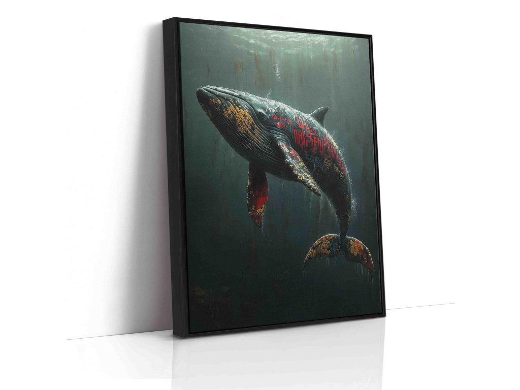 Když se setká hlubina oceánu s pouličním uměním, vzniká něco naprosto unikátního. Tento obraz na plátně zobrazuje majestátní velrybu pod hladinou, jejíž tělo je zdobeno barevným street artem. Tato kreativní fúze přírody a urban stylu je ideální pro moderní interiéry, které se nebojí vystoupit z davu. Syté barvy a dynamika graffiti dodají vašemu pokoji moderní energii a originalitu.