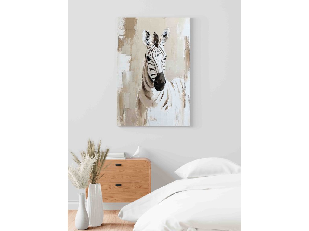 Tradiční pruhy v netradičním pojetí. Tento obraz na plátně s motivem zebry ve stylu akrylové malby využívá kontrast černé a bílé doplněný o dynamické barevné akcenty. Výsledkem je svěží a moderní dílo, které okamžitě upoutá pozornost. Zebra na plátně vypadá velmi plasticky a umělecky, což z ní činí skvělý kousek do obývacího pokoje nebo haly. Dekorace, která spojuje africkou exotiku a evropskou modernu.