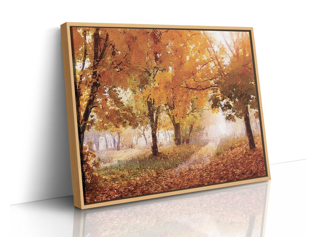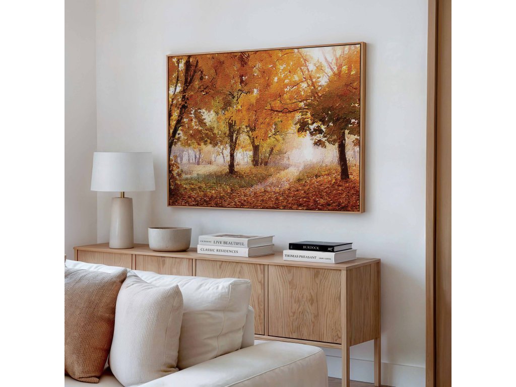 Když se příroda oblékne do zlata. Obraz Žlutý podzim zachycuje les v období, kdy listí září všemi odstíny žluté a okrové. Tento motiv prosvětlí i tmavší místnosti a dodá jim pocit tepla, i když je venku pošmourno. Kvalitní tisk na plátně zajišťuje věrnou reprodukci detailů přírody.