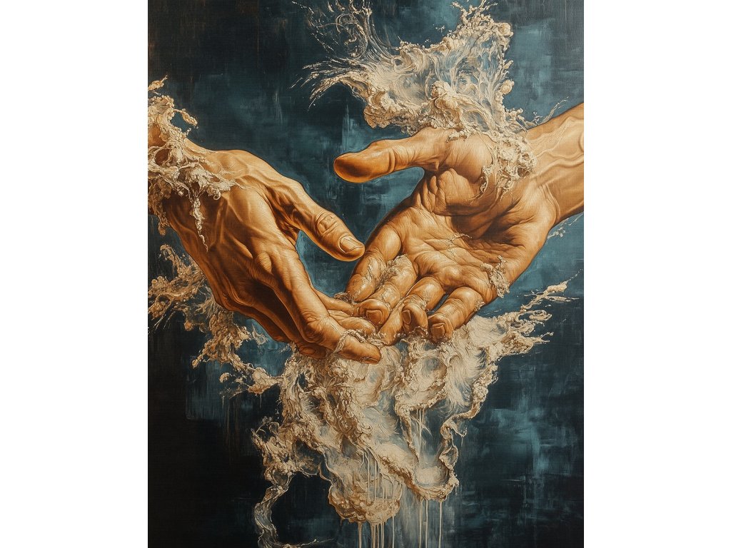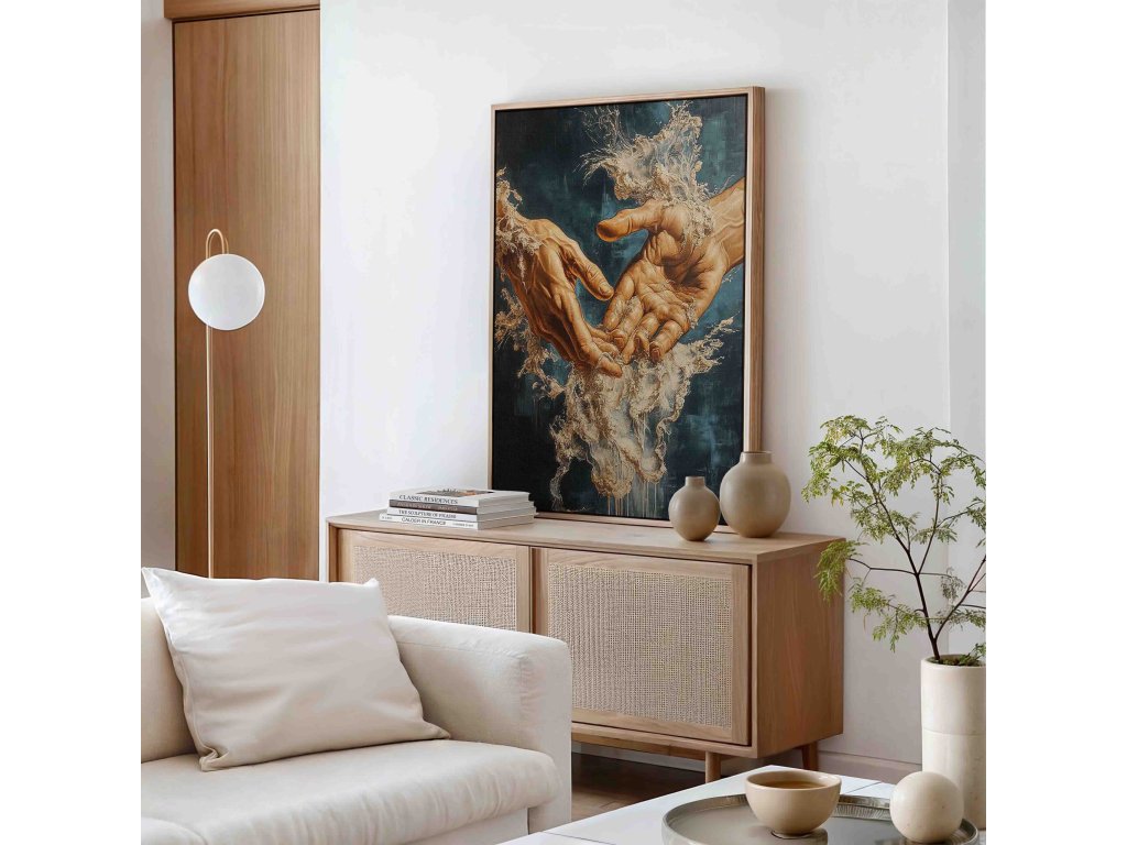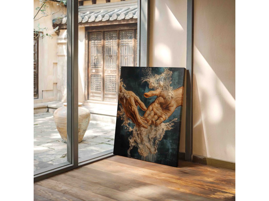 Dojemný obraz "Podání rukou" zachycuje moment duchovního spojení mezi člověkem a Bohem, symbolizující víru a naději. Toto umělecké dílo vnese do vašeho domova pocit klidu a útěchy. Kvalitní plátno s živými barvami podtrhuje hloubku duchovního poselství. Moderní interpretace nadčasového motivu, který promlouvá k srdci. Perfektní dar pro věřícího nebo jako dekorace do kostela.